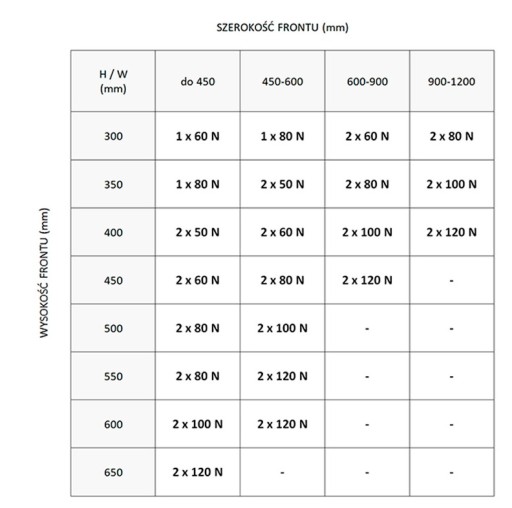 - SIŁA PODNOŚNIKA: WAGA FRONTU MEBLOWEGO