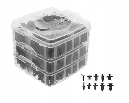 Uniwersalny zestaw kołków +zatrzasków samochodowych do mocowania tapicerki, elementów plastikowych, zderzaków, uszczelek itp.