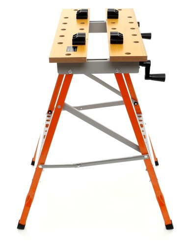 Wysokiej jakości stół warsztatowy (rzemieślniczy). Konstrukcja stołu umożliwia dopasowanie położenia blatu roboczego oraz jego szerokości do kształtu przedmiotu który chcemy w nim umieścić. Dodatkowo blat wyposażony został w przekładane szczęki zaciskowe umożliwiające mocowanie na stole przedmiotów o różnych kształtach. Regulacji stołu dokonuje sie za pomocą pokręteł umieszczonych po jego prawej i lewej stronie.