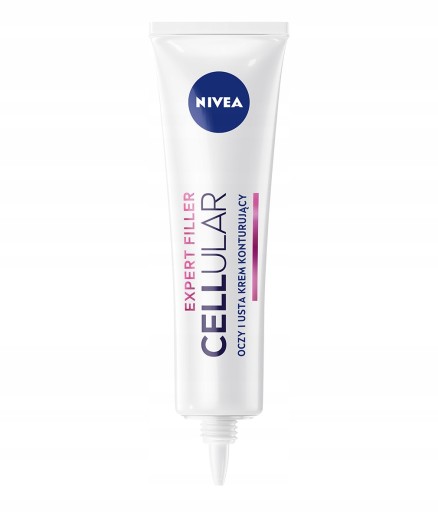 NIVEA Cellular Expert Filler Oczy i usta krem konturujący z zaawansowaną formułą zawierającą połączenie silnych składników przeciwstarzeniowych, zapewnia efekt wypełnienia w 24 godziny*: CZYSTY KWAS FOLIOWY odbudowuje komórki i wspomaga procesy naprawcze włókien skóry*, by skóra była bardziej jędrna i sprężysta. MIKRO I MAKROCZĄSTECZKOWY KWAS HIALURONOWY, znany ze swoich właściwości nawilżających i wygładzających efektywnie wypełnia zmarszczki. Tolerancja NIVEA kremu do twarzy została potwierdzona dermatologicznie.