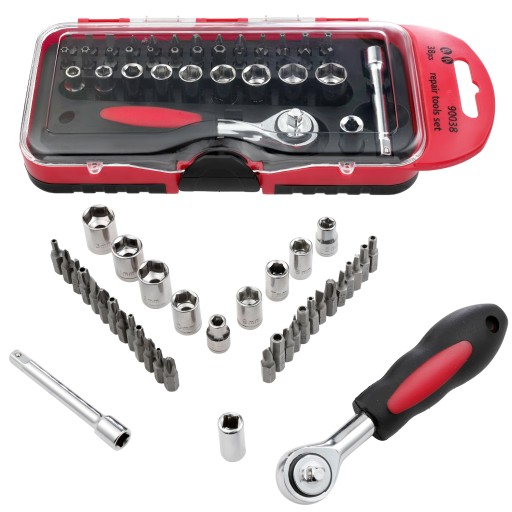 ZESTAW WKRĘTAKÓW Z GRZECHOTKĄ I NASADKAMI 1/4" 38 ELEMENTÓW