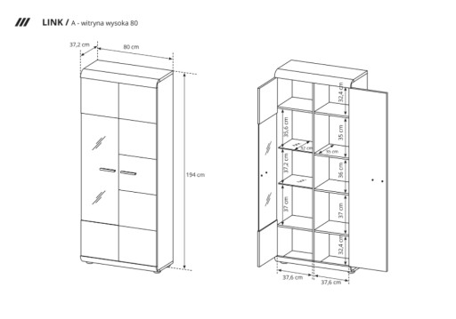 - Witryna wysoka LINK 80 – szer. 80 cm, wys. 194 cm, gł. 37 cm