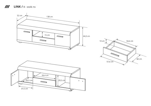 - Szafka RTV LINK 140 – szer. 140 cm, wys. 44 cm, gł. 54 cm