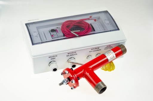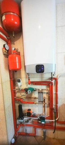 - W zestawie znajduje się kocioł, szafka prądowa z zabezpieczeniami, stycznikiem oraz sterowaniem do CO i CWU.
