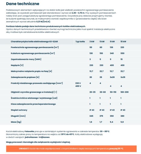 - Kocioł elektrodowy przy dobrze ocieplonym domu zużywa średnio ok. 50kwh / 1m2 /rok (zimę).