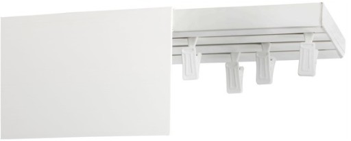 Standardowe upięcie stosowane do szyn pcv. Po wewnętrznej stronie żabki znajdują się ząbki, które zapobiegają wyślizgiwaniu się firan/zasłon.