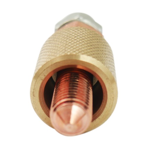 - ⭐ Przykładamy masę oraz np. trójkąt z młotkiem do elementu obrabianego. Naciskamy spust tak jak byśmy chcieli trójkąt przygrzać. Uchwyt szybkiej masy się przygrzeje, następnie skręcamy nakrętkę by zgrzew się nie urwał podczas pracy i gotowe.