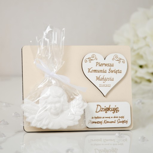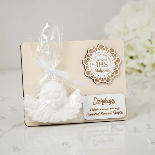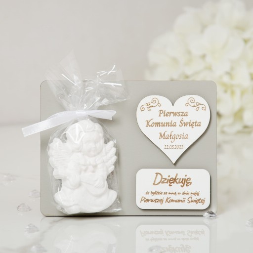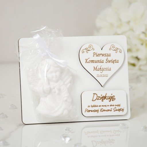 Tabliczka z Aniołkiem - podziękowanie dla gości za udział w uroczystości Pierwszej Komunii Świętej!