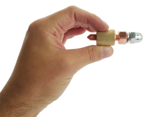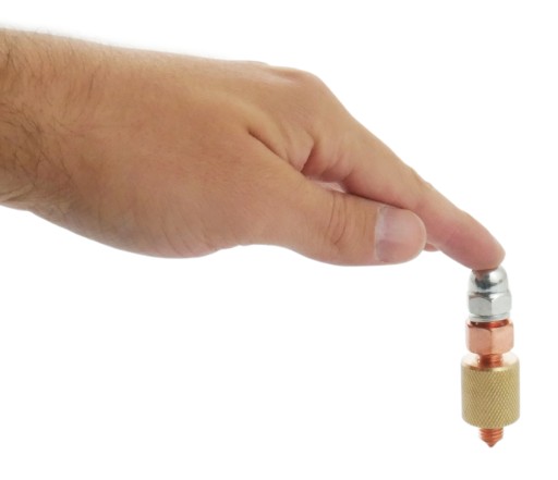 - ✔️ Przykładamy masę oraz np. trójkąt z młotkiem do elementu obrabianego. Naciskamy spust tak jak byśmy chcieli trójkąt przygrzać. Uchwyt szybkiej masy się przygrzeje, następnie skręcamy nakrętkę by zgrzew się nie urwał podczas pracy i gotowe.