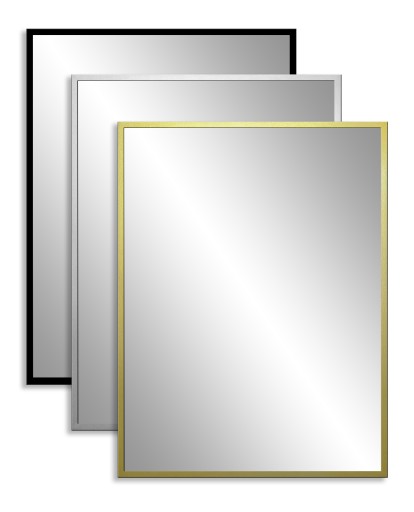 Prostokątne lustro ścienne w aluminiowej ramie.