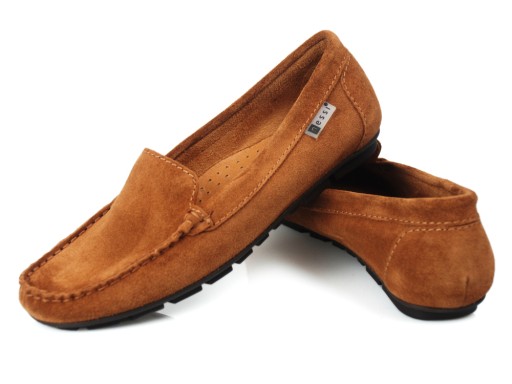 Mokasyny wykonane w całości z wysokogatunkowej skóry zamszowej w kolorze camel.