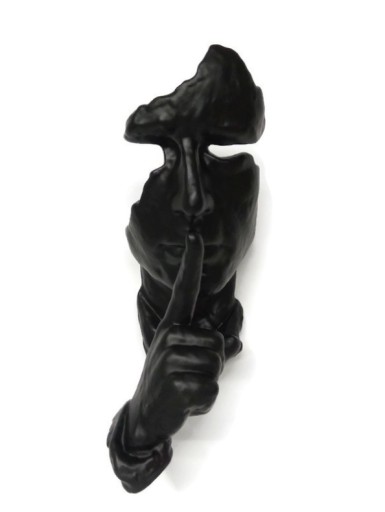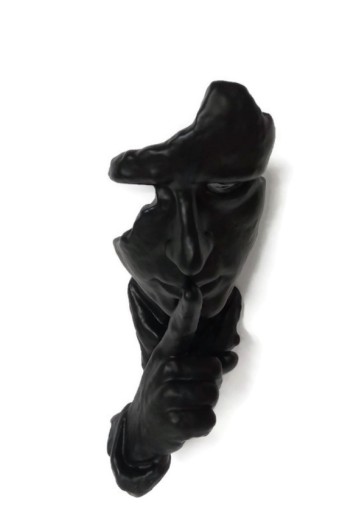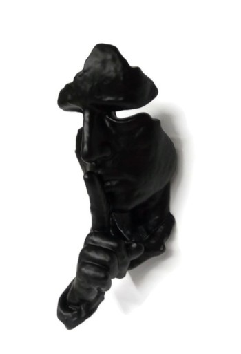 Rzeźba Cisza.Wysokość 31cm.Szerokość 11cm.Materiał:konglomerat kamienno-cementowy.Do zawieszenia .Kolor czarny.