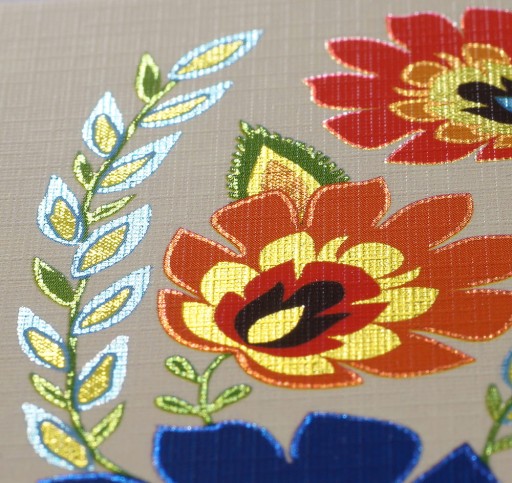 - Wzór oparty na tradycyjnej polskiej twórczości ludowej z okolic Łowicza