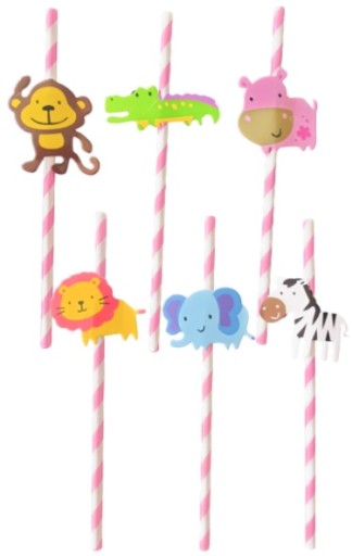 Słomki papierowe różowe ze zwierzątkami - 6 sztuk