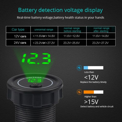 W przypadku, gdy napięcie jest niższe niż 11.5 V, woltomierz uruchomi Alarm.