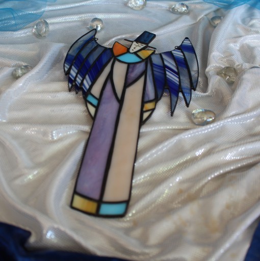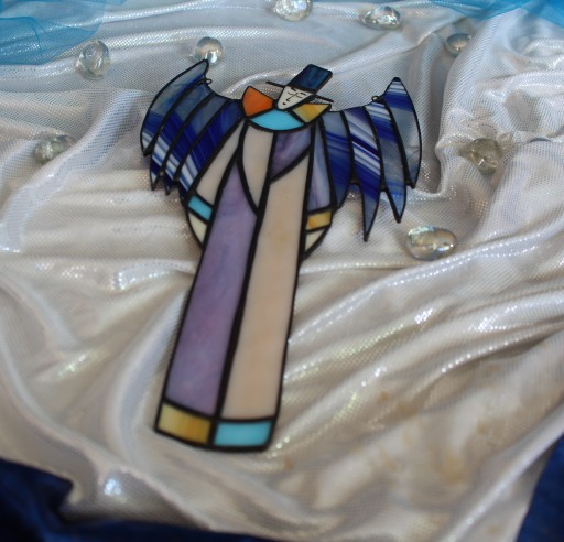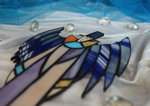 Szkło wycinane jest ręcznie i połączone ze sobą miedzią oraz cyną. Skrzydła wykonane są z półprzezryczystego białego-bezbarwnego szkła, sukienka zaś z barwionego w masie szkła, które nie jest malowane. Specyficzne ukształtowanie i wybarwienie szkła powoduje, że nie istnieją dwa identyczne egzemplarze.