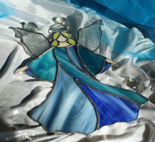 Тиффани сине-серый витражный ангел
