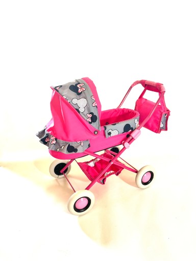 POLSKI SKŁADANY WÓZEK DLA LALEK Z TORBĄ RÓZOWY, CZERWONY I SZARY