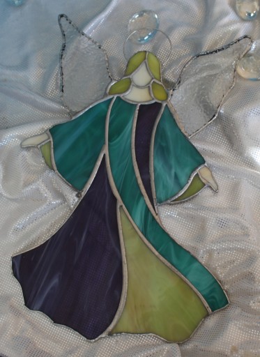 Тиффани витраж ангел развернутый селадон фиолетовый