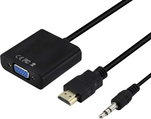 Adapter konwertuje cyfrowy sygnał HDMI do sygnału analogowego VGA plus dźwięk audio ( podawany przez kabel Jack )