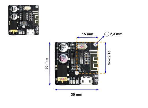 Moduł do parowania urządzeń za pomocą Bluetooth. Urządzenie pozwala odebrać sygnał z innego urządzenia (Bluetooth) i podłączyć do niego inne urządzenia odtwarzające np. wzmacniacz - moduł posiada gniazdo z klasyczną końcówką typu mini-jack (dwa kanały - stereo) oraz port micro USB.