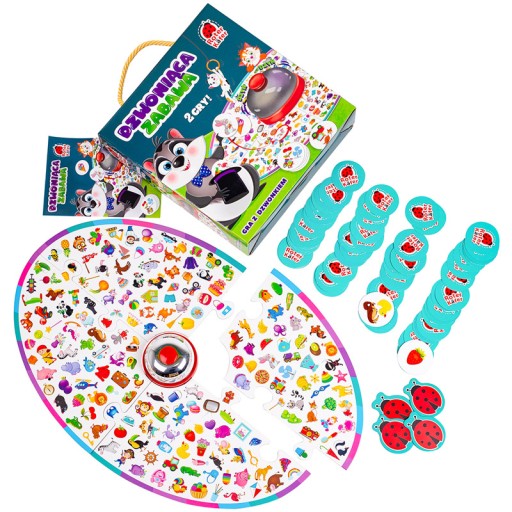 Dzwoniąca zabawa to wesoła i dynamiczna gra z dzwonkiem wymagająca dobrego refleksu i spostrzegawczości. To 2 wersje zabawy o różnym stopniu trudności w jednym opakowaniu. Celem gry jest zebranie jak największej ilości fiszek przedstawiających urocze grafiki. Każdy z grających kolejno odwraca po 1 fiszce i pokazuje pozostałym osobom jaki obrazek przedstawia. Gracze wyszukują wskazany obrazek lub bohatera na którymkolwiek z pól, kto zauważy pierwszy - naciska dzwonek: dzyń! Jeżeli obrazki na fiszce i polu gry są takie same, to gracz pozostawia sobie tę fiszkę. Wygrywa ten, który zbierze największą ilość fiszek.