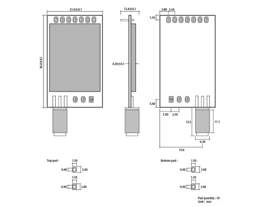 Wszystkie wejścia i wyjścia modułu E220-900T22D zostały dla Twojej wygody wyprowadzone do goldpin raster 2.54mm.