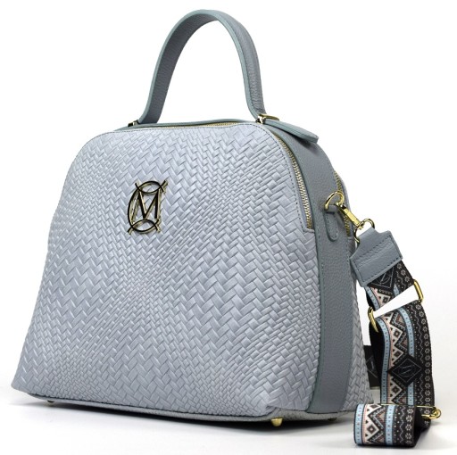 W całości ze skóry naturalnej. Przód i tył torebki wytłaczany.