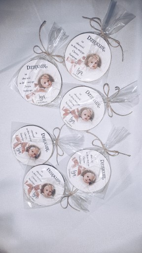 Informacje potrzebne do magnesów: imie dziecka, tekst podziękowań, data oraz zdjecie. Zdjęcie proszę o przeslanie na dres email.