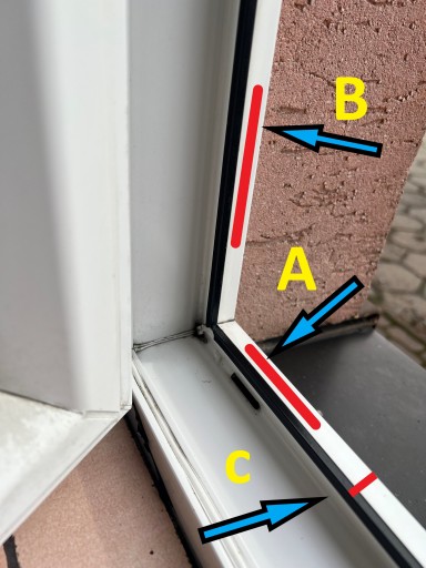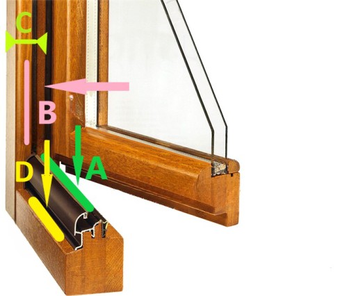 - grubość felcu z uszczelką (ramy okna) - zaznaczona poniżej jako "C"