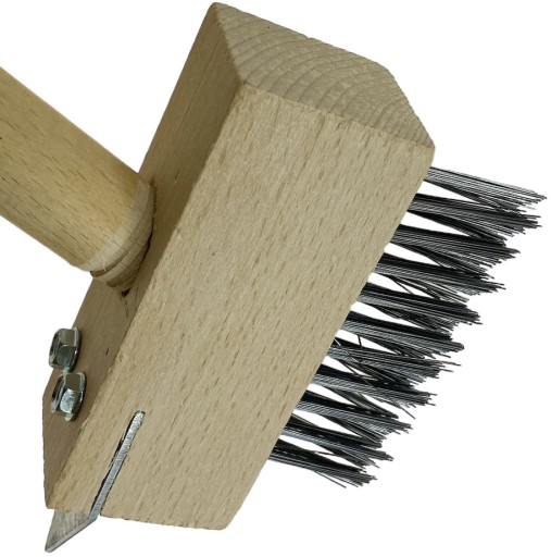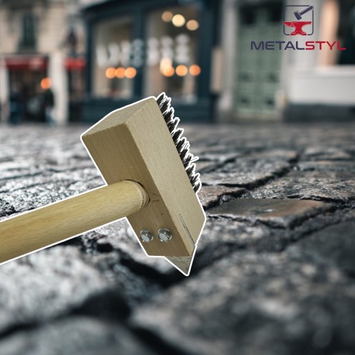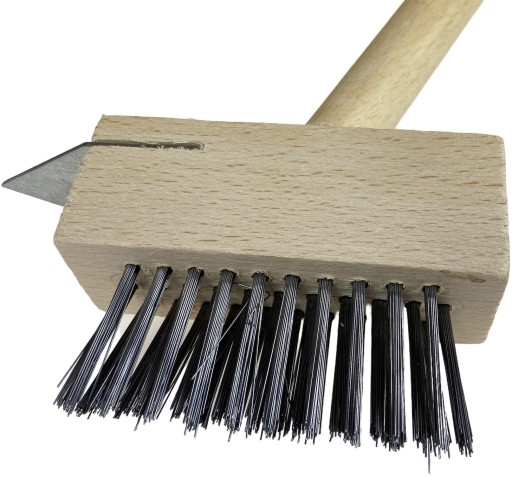 Szczotka druciana do czyszczenia kostki brukowej z trzonkiem i skrobakiem