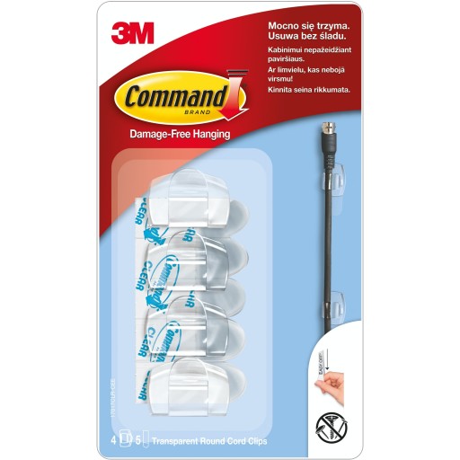 3M COMMAND UCHWYT DO KABLI TRANSPARENTRNY PLASTIKOWY 4SZT 17017