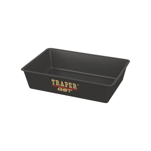 Kuweta czarna Traper 34x24cm . Kuweta plastikowa, idealna do przygtowywania zanęt i przynęt w tym przepuszczania białych robaków, pinek i ochotki przez dedykowane, prostokątne sito traper.