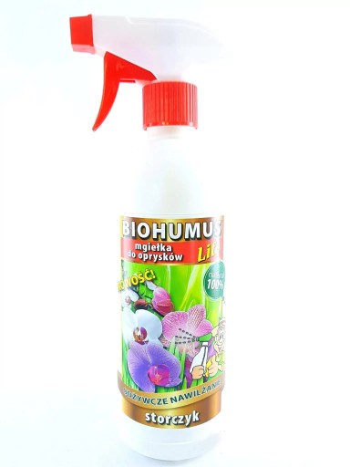 Wieloskładnikowa mgiełka odżywcza do dolistnego nawilżania storczyków. Uzyskana z BIOHUMUSU - produktu hodowli dżdżownic kalifornijskich.