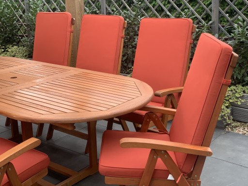 Poniżej kilka przykładowych zdjęć stołu Toledo z krzesłami Calgary. Zestaw z poduszkami możesz zakupić na Naszych innych aukcjach.