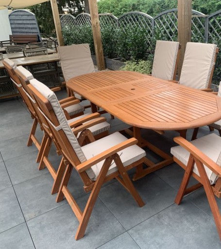 Комплект садовой мебели, раздвижной стол для террасы, обеденный набор на 8 человек.