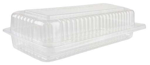 Prostokątny pojemnik wykonany z przeźroczystego tworzywa PET. Idealny do transportu i przechowywania ciast, ciasteczek, wypieków, itp. Dzięki zamykanej pokrywce zawartość jest lepiej chroniona przed uszkodzeniami i dłużej zachowuje świeżość.
