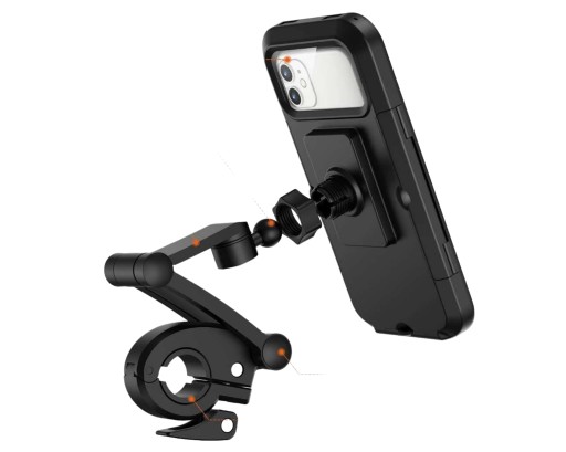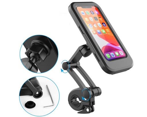 Uniwersalny uchwyt odpowiedni zarówno na rower, jak i quada oraz motocykl. Pasuje do smartfonów nie tylko z małym, ale i również z większym wyświetlaczem. Posiada wodoodporną obudowę wraz z wysokiej czułości folią TPU, która pozwala na korzystanie ze smartfona bez wyjmowania telefonu. Etui jest szczelne i zapewnia optymalne zabezpieczenie urządzenia w czasie jazdy. Ochroni sprzęt zarówno przed kurzem, pyłem, jak i deszczem. Nie musimy obawiać się też o zarysowania smartfona. Uchwyt mocuje się do kierownicy za pomocą solidnej obejmy. Zaletą tego produktu są również właściwości antywibracyjne. Telefon utrzymany jest stabilnie i zapewnia komfort podczas jazdy dzięki dodatkowemu wbudowanemu wewnętrznemu uchwytowi magnetycznemu.
