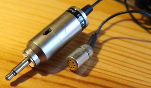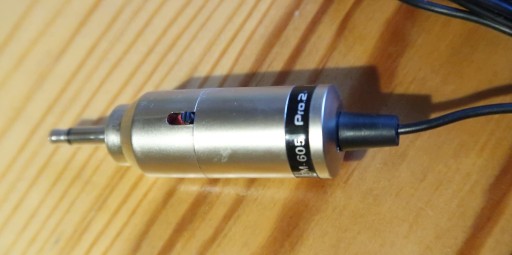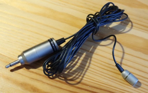 Mikrofon pojemnościowy Pro.2 EM-605, wtyk mini-jak 3,5mm. Stan techniczny nieznany. Zdjęcia przedstawiają sprzedawany egzemplarz.