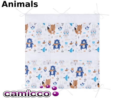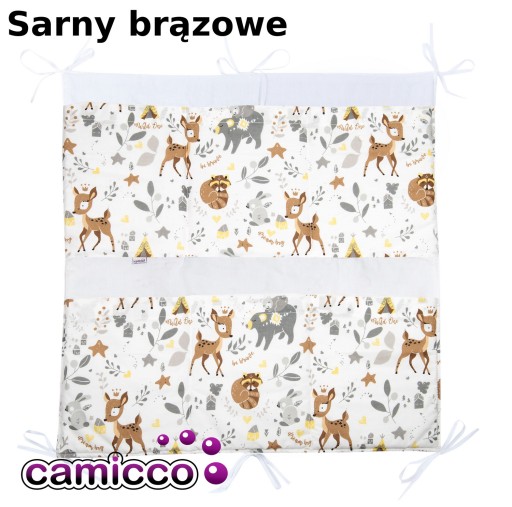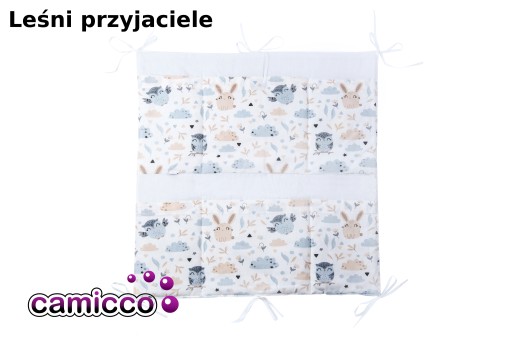 Przybornik pomieści niezbędne akcesoria w codziennej pielęgnacji Maluszka, do tego wspaniale ozdobi łóżeczko, posiada 6 kieszonek. Wiążemy go za pomocą sznureczków do szczebelków łóżeczka na wybranym przez siebie miejscu i wysokości