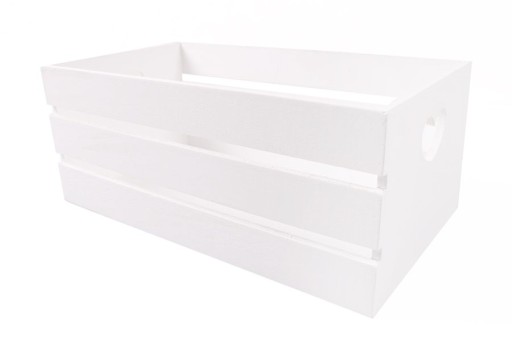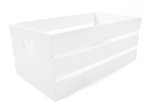 PROSTOKĄTNA BIAŁA DREWNIANA SKRZYNKA Z WYCIĘTYMI SERCAMI 36x20x15 cm