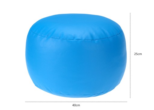 Okrągła pufa roller, w 20 wersjach kolorystycznych do wyboru. Wymiary pufy to 40cm średnicy i 25cm wysokości. Pufa jest meblem bezszkieletowym, dlatego jej wymiary mogą się zmieniać w zależności od wagi osoby użytkującej czy ułożenia pufy. Pufa jest standardowo wypełniona mieszanką sprężystych materiałów do produkcji mebli, które zapewniają trwałość i komfort użytkowania. Roller został wykonany z ekoskóry dollaro, która posiada atest PZH.
