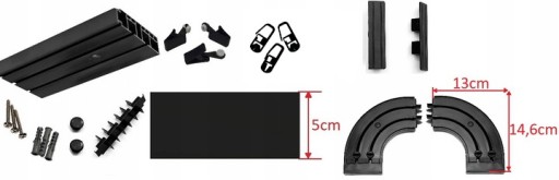 - Maskownica w kolorze czarnym o szerokości 5 cm i długości równej całkowitej długości karnisza