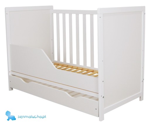 Dodatkowo polecamy zakup barierki umożliwiającej przerobienie łóżeczka na tapczanik (Brak w tej ofercie).