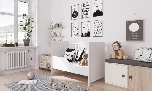 Dodatkowo polecamy zakup barierki umożliwiającej przerobienie łóżeczka na tapczanik (brak w tej ofercie).
