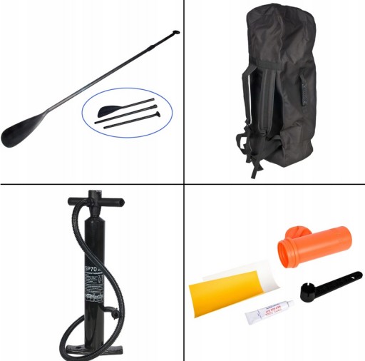 W cenie deski plecak do transportowania, pompka, smycz, zestaw naprawczy i lekkie wiosło!