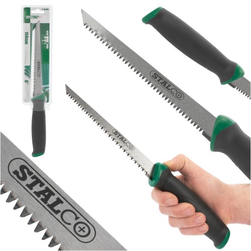 Piła STALCO odznacza się wyjątkowo wygodną konstrukcją. Ergonomiczny gumowy uchwyt o specjalnie dopasowanym kształcie idealnie leży w dłoni. Specjalne wypustki zapobiegają wyślizgiwaniu się piły podczas cięcia.