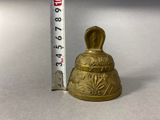 Przedstawiamy Państwu oryginalny zabytkowy dzwonek z mosiądzu z dużą domieszką brązu. Ciężki, grube ścianki i co najważniejsze wykonany w kraju europejskim a nie w Indiach.