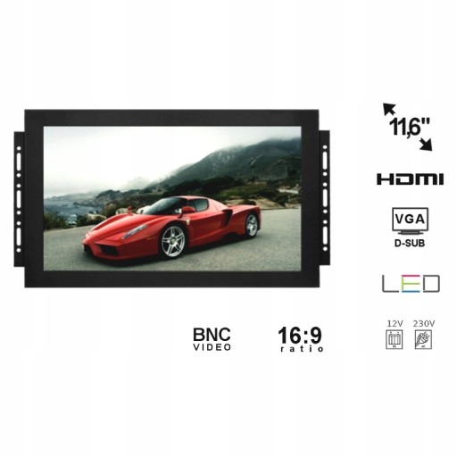 Monitor Open Frame IPS LED 12'' VGA HDMI BNC AV