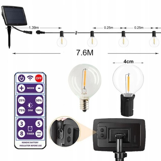 Гирлянды, садовые фонари на солнечных батареях, лампочка 25, 3Вт, С ДИСТАНЦИОННЫМ УПРАВЛЕНИЕМ